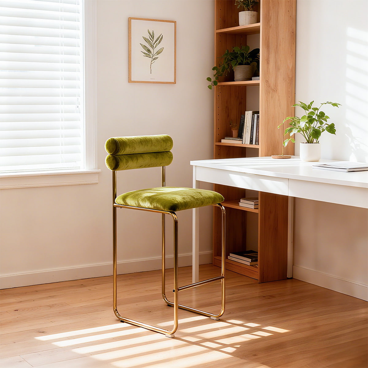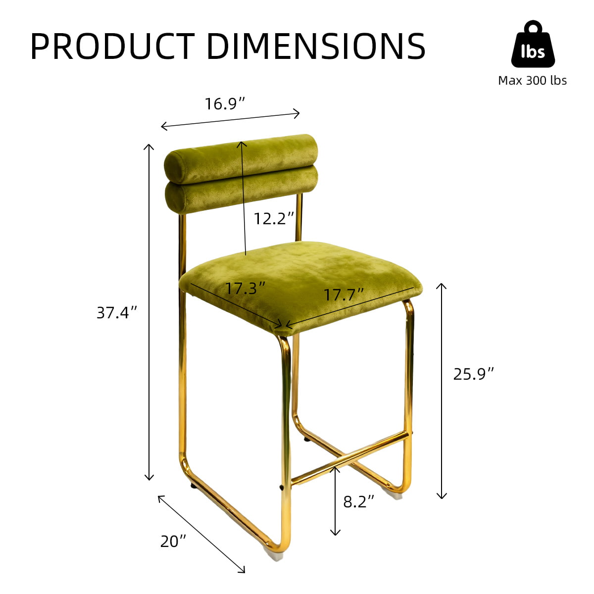 Jeho 37,4-palcová výška sa zmestí na štandardné kuchynské linky a jedálenské bary, zatiaľ čo 25,9-palcové sedadlo zaisťuje optimálne pohodlie pre dlhé rozhovory alebo príležitostné stolovanie. Jemné zamatové čalúnenie ponúka luxusný hmatový zážitok a pozlátené nohy dodávajú rafinovaný nádych. S vysoko odolnou penovou poduškou a protišmykovou základňou je táto stolička navrhnutá tak, aby spájala pohodlie, štýl a odolnosť – ideálna pre domáce aj komerčné priestory.