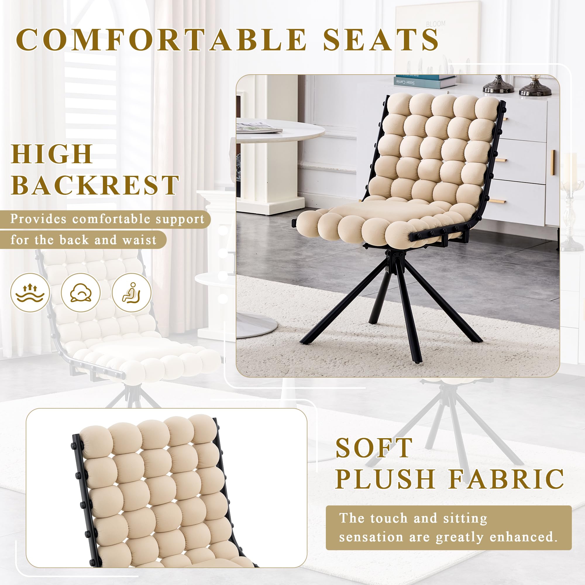 Zamatová otočná jedálenská stolička s bublinkovým operadlom, čalúnená akcentová stolička s kovovými nohami (bez koliesok)