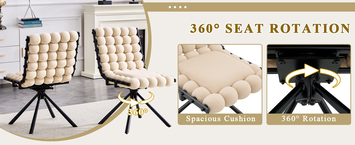 Táto zamatová otočná jedálenská stolička je navrhnutá pre moderné jedálenské priestory, lifestylové interiéry a butikové komerčné prostredie. Stolička so sochárskym bublinkovým vankúšovým operadlom a hladkým holandským zamatovým čalúnením spája pútavý dizajn s každodenným pohodlím. Funkcia otáčania o 360 stupňov umožňuje flexibilný pohyb, zatiaľ čo robustné kovové nohy a základňa bez kolies poskytujú spoľahlivú stabilitu pre jedálne, obývacie izby, kozmetické priestory a sedenie v kaviarni. Ergonomický zakrivený chrbát a vysoko odolné špongiové odpruženie pomáhajú rovnomerne rozložiť tlak tela a ponúkajú pohodlnú oporu pri dlhom sedení.