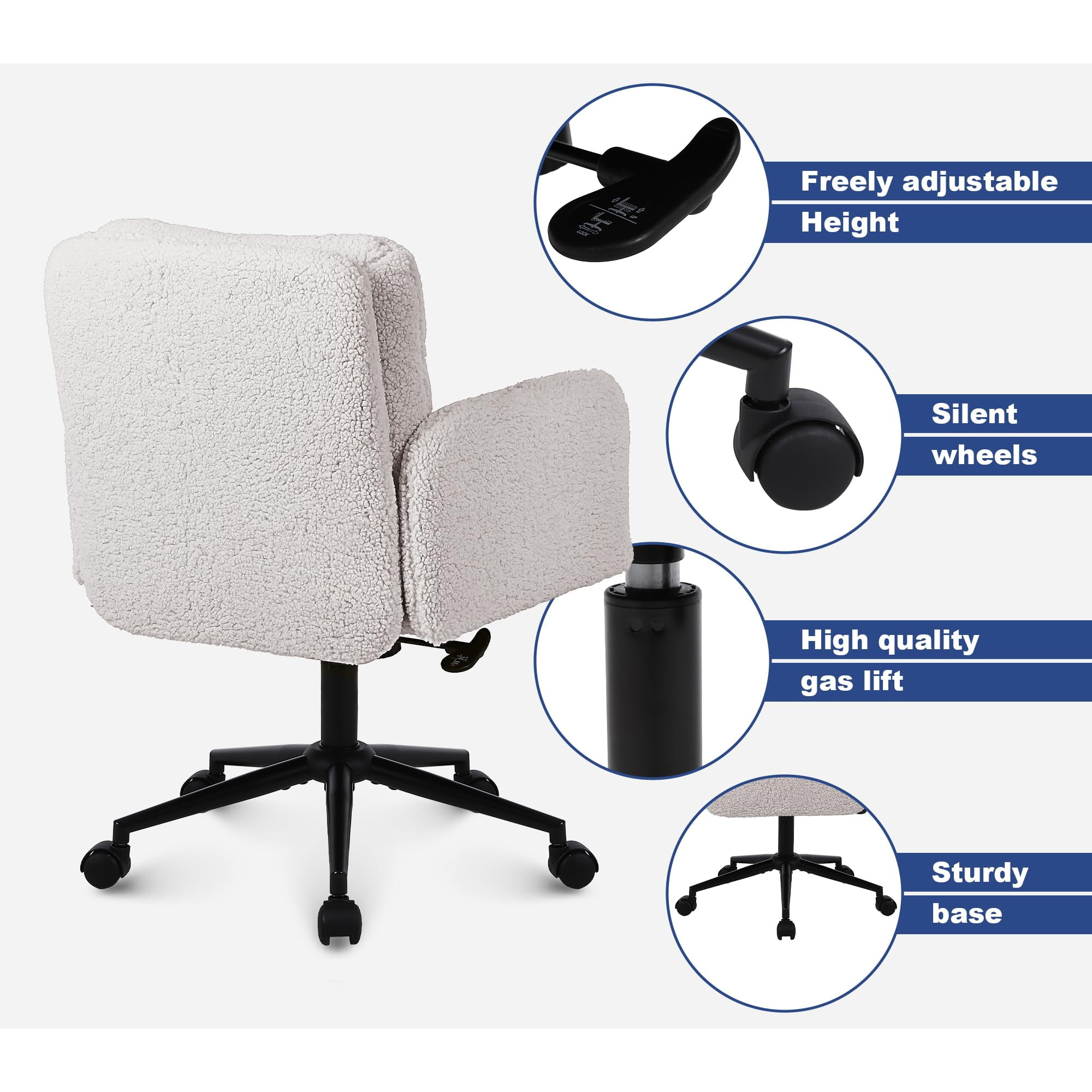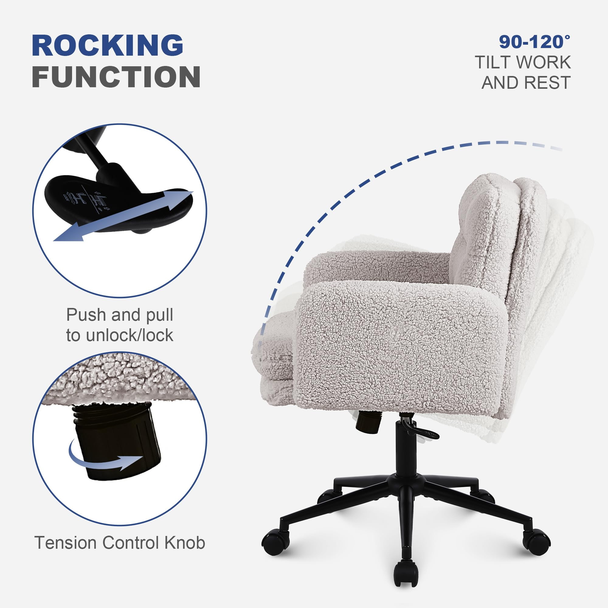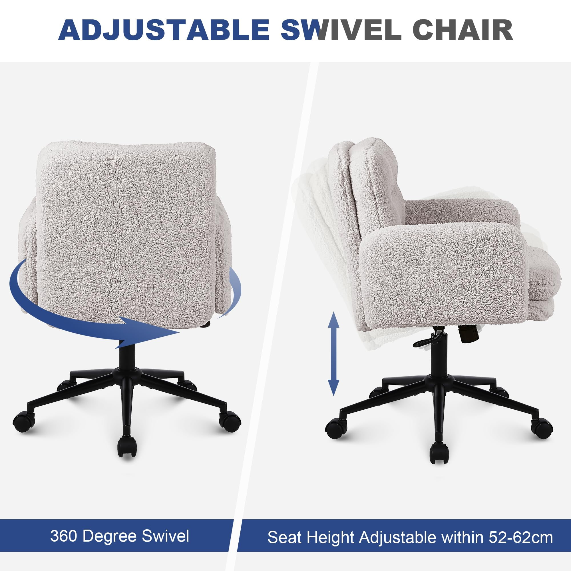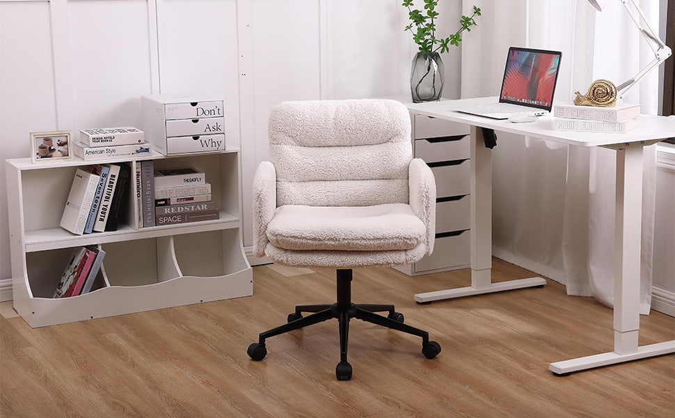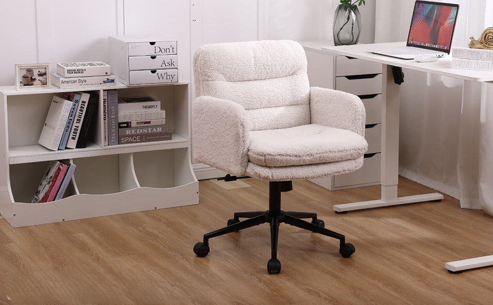 Nastaviteľná kancelárska stolička z umelého kašmíru s funkciou otáčania a hojdania – mäkká čalúnená písacia stolička na domáce použitie