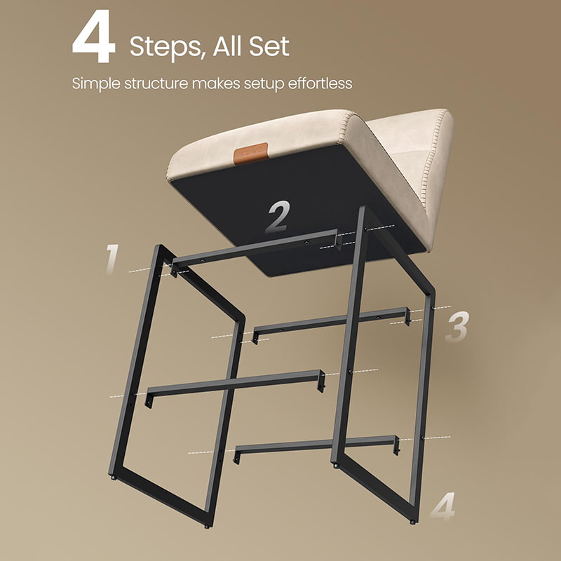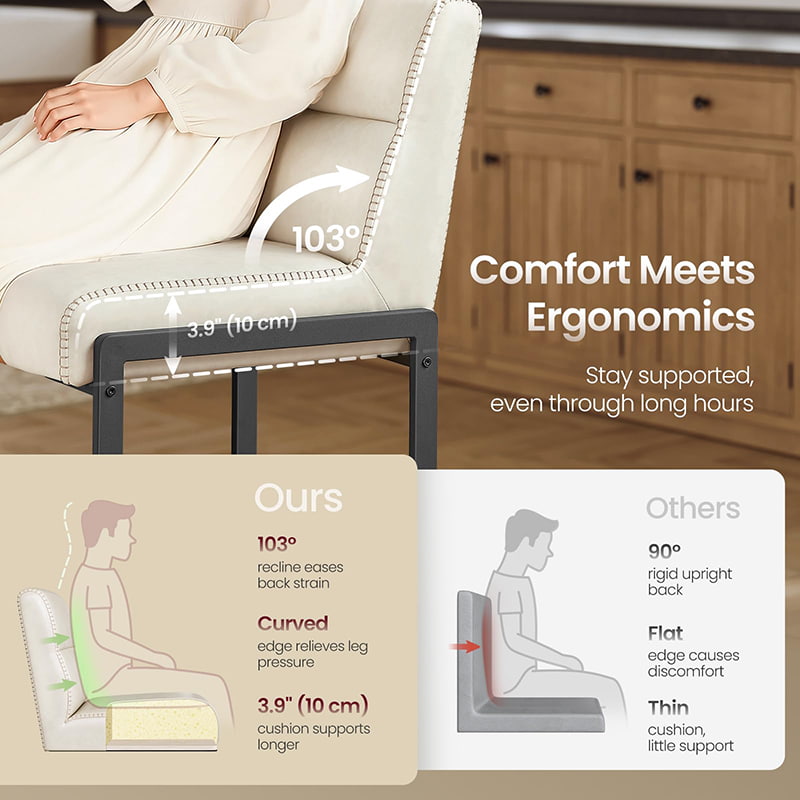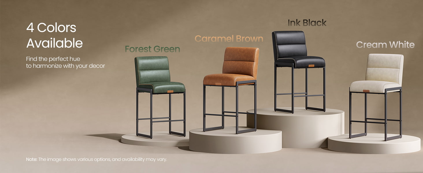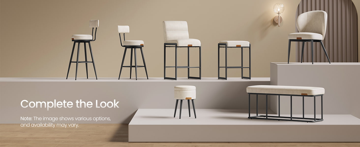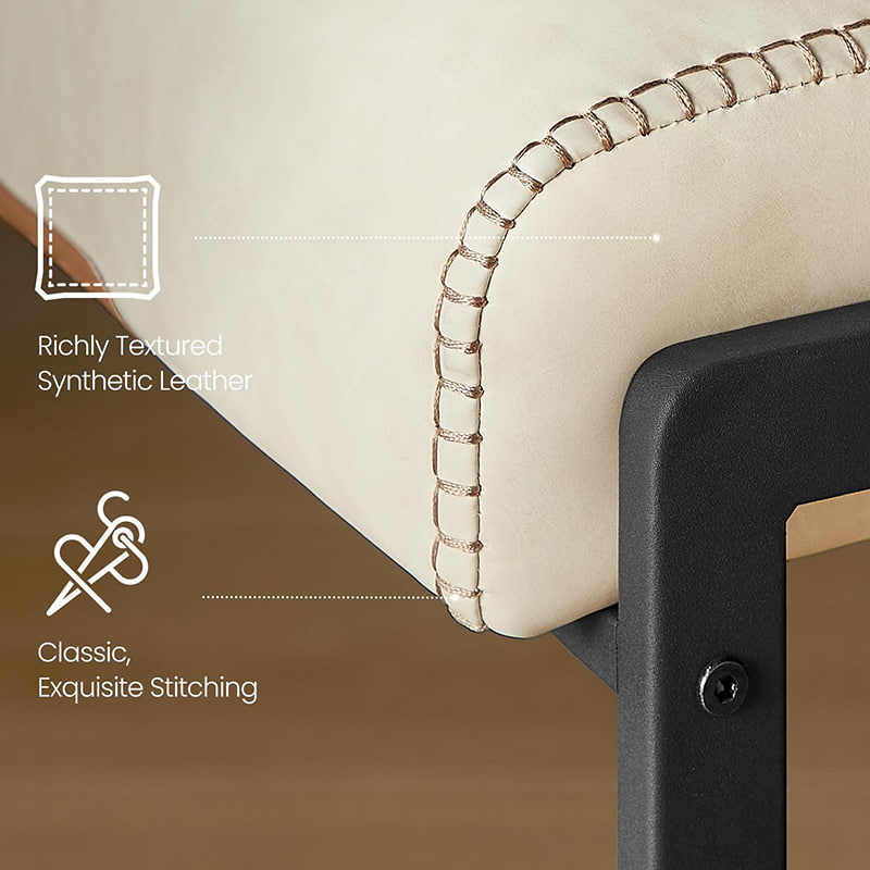 Tieto moderné barové stoličky z polovice storočia určené pre kuchynské linky a jedálenské ostrovčeky, tieto krémovo biele stoličky s vysokým pultom sú vybavené odolným čalúnením zo syntetickej kože s rafinovaným prešívaním a čistým architektonickým kovovým rámom. Ergonomické 103-stupňové segmentované operadlo, 3,9-palcové hrubé čalúnené sedadlo a zakrivená predná hrana poskytujú trvalé pohodlie pri dlhšom sedení, vďaka čomu sú vhodné do obytných kuchýň aj do ľahkých komerčných prostredí, ako sú kaviarne alebo showroomy.