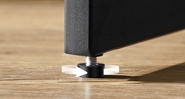 ● Stabilná kovová základňa s nastaviteľnými nožičkami pre nerovné podlahy